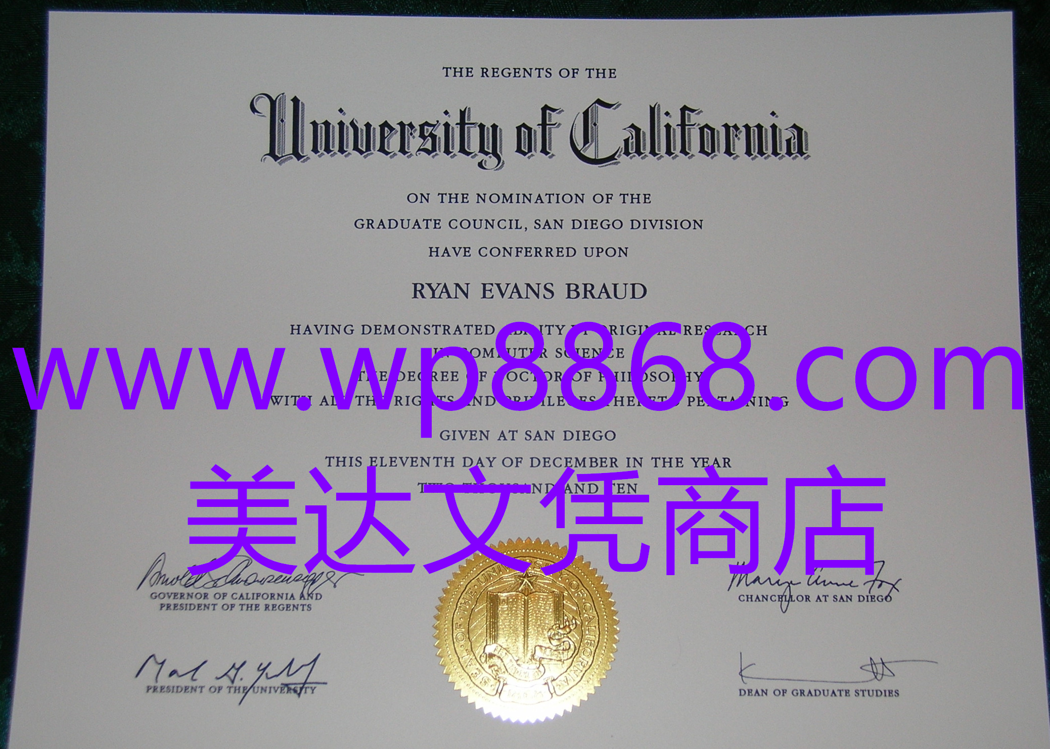 加州大学圣地亚哥分校毕业证案例图|UCSD文凭样本|美国加州大学圣地亚哥分校毕业证成绩单照片