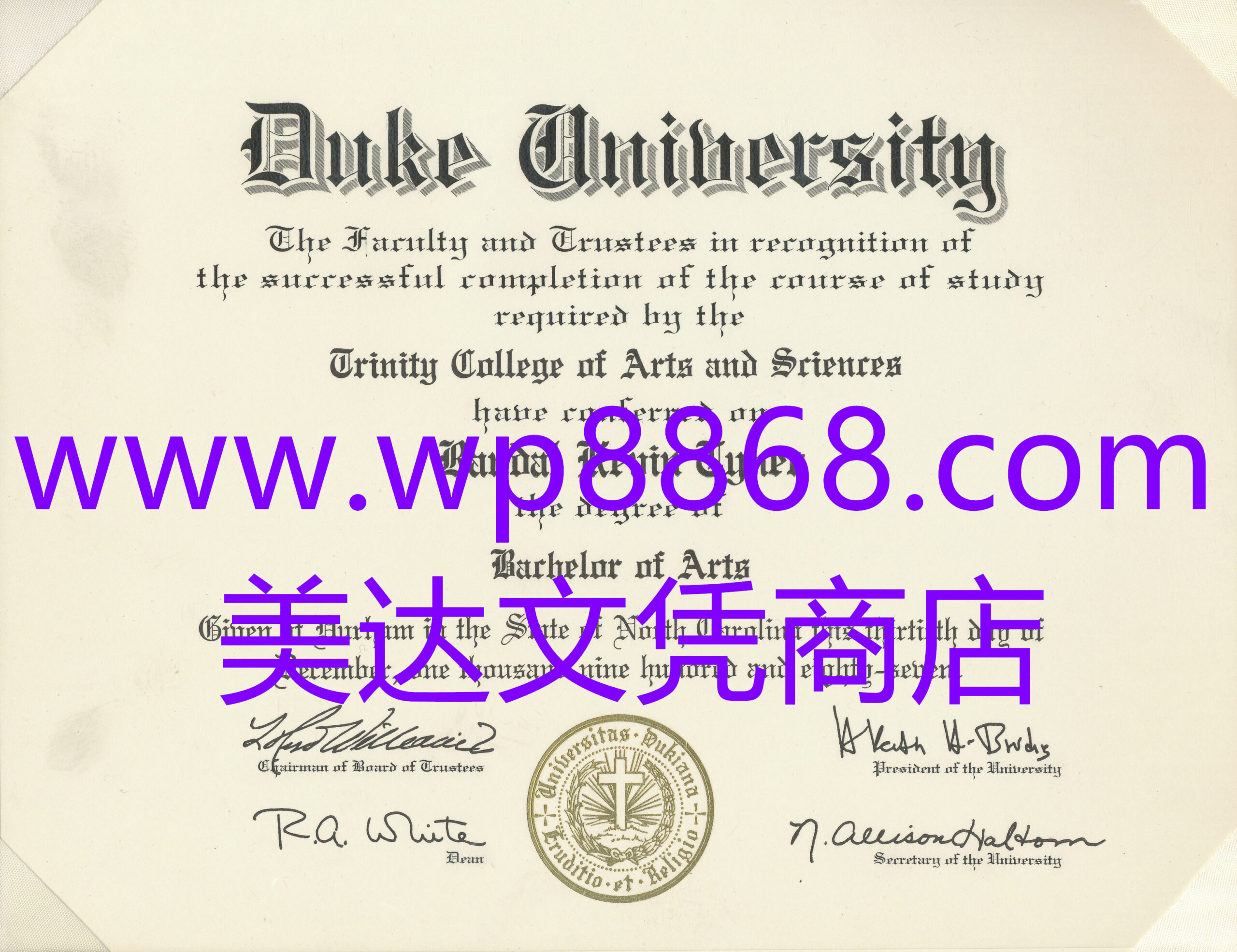 杜克大学毕业证办理|杜克大学毕业证成绩单|美国杜克大学毕业证文凭认证 杜克大学被公认为是当今世界顶尖的高等学府之一,多个学科包括生物科学、统计学、人文科学、公共政策、心理学、计算机科学、政治学、工程学等排名全美前列,其中商学院、法学院和医学院位列美国前十。根据彭博商业周刊(Bloomberg Businessweek)于2014年公布的最佳全日制MBA项目排名,杜克大学福库商学院(Fuqua School of Business)超过哈佛大学商学院、芝加哥大学布斯商学院等,位居全美商学院首位。1841年,北卡罗来纳州授予学校作为联合学术机构的特权。 1851年,学校改名为师范学院,隶属循道卫理教会。 1859年,因受到卫理公会教堂的捐助而改名为三一学院(Trinity College),校训是“知识与宗教”。 1878年,玛丽·皮尔斯·特里萨吉尔成为学校第一批被授予学位的女性。 1881年宋嘉澍(英文名Charlie),也就是中国近代历史上宋氏家族的创始人,成为学校的第一个国际学生。1924年,华盛顿·杜克的儿子詹姆斯·杜克捐赠了一笔高达4千万美元的捐款成立杜克基金,用以赞助他的家乡达勒姆市周围多所高等教育机构与医院的营运。同列在受馈名单的三一学院董事长威廉·普莱斯登·富坚持学校应该改名为杜克大学以感谢杜克家族的善心,在詹姆斯·杜克的同意之下,学校改名为今杜克大学。1942年,杜克大学承办了唯一一次在洛杉矶之外的NCAA玫瑰碗总决赛(美国大学橄榄球四大碗之首)。学校还在第二次世界大战中承办了为美国海军训练人才的V-12 Navy College Training Program项目。 1952年,正式教职工参与大学治理与大学校董会,成立了一个高层次的咨询委员会。 1983年,建立妇女研究计划。学院设置另外,杜克大学还设有40多个研究所和研究中心。其中重要学术机构包括:资源与环境政策研究中心、全球健康中心、威特兰动植物研究中心、海洋实验室、海洋生物医学中心和热带环境保护中心等。 专业设置 杜克大学为本科课程提供36门文理专业及46门可选择的被这股只有在晋级之后才能感受到的充盈感觉震得愣了愣,萧炎握了握拳头,旋即微张着嘴,抬起脸,有些迟疑与不确定的道:“那个…我好像到第九段了?”一旁,谷尼也是同样的表情,揉了揉额头,叹道:“五枚聚气散…这手笔,就算他本身是四品炼药师,也是有些大了啊。”摸了摸脸庞,萧炎轻声道:“别的地方我不知道,不过你再装逼,信不信,我能让你走不出乌坦城?”同样是第一次听见这名字。小医仙顿时疑惑的眨了眨眼,她听说过攻击攻击,防御斗技,身法斗技等等,可却是头一次听见飞行斗技。望着这仅余的两枚丹药,萧炎无奈的摇了摇头,将其中一枚丢进嘴中,然后双手迅速摆出修炼的印结。见到萧炎炼药,药老也是偷偷的从戒指中飘了出来,不过当他看着萧炎所挑选的药材之后,却是老眉一挑,旋即沉默不语的站在他身后。站在这里,萧炎谨慎的四处望了望,然后才狂喜着脸色,再次拼了命的对着那条存放着伴生紫晶源的通道内部狂奔而去。“**!”见到气旋这般举动,萧炎直接气得破口大骂,然而骂声刚落。他却是猛然发现。那紫色气旋的表面,随着它地高速旋转。竟然开始逐渐的缭绕上一层紫色火焰。见到两人这模样,琳菲与雪魅眉头微皱,失败了?脚掌重重的踏上沙面,萧炎的脚掌深陷了半尺,轻喘了一口气,缓缓的抽出脚掌,慢慢地行至玄重尺处,手掌握着尺柄,将之一把抽了出来。