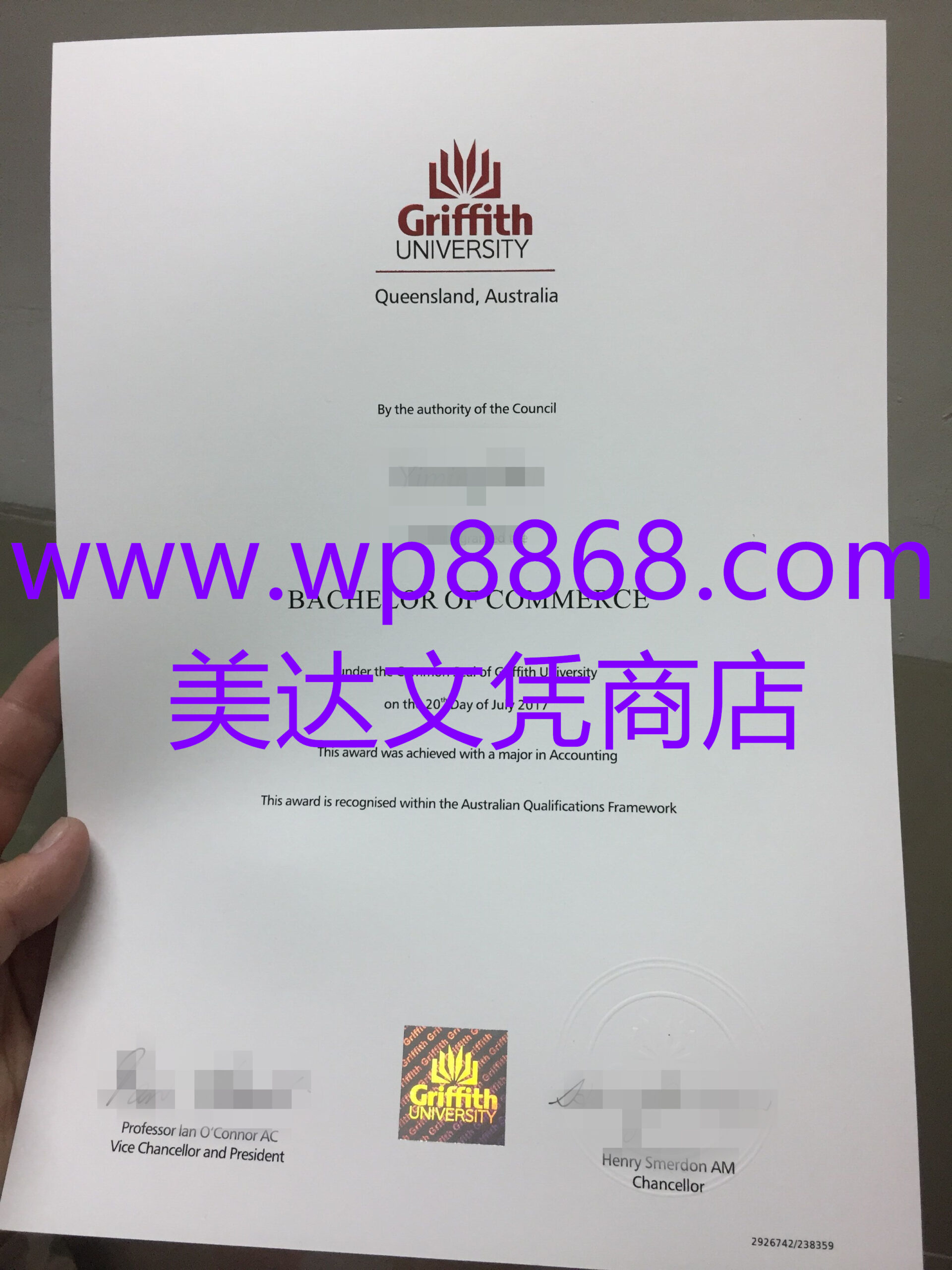 格里菲斯大学毕业证案例图|Griffith文凭样本|澳洲格里菲斯大学毕业证成绩单照片