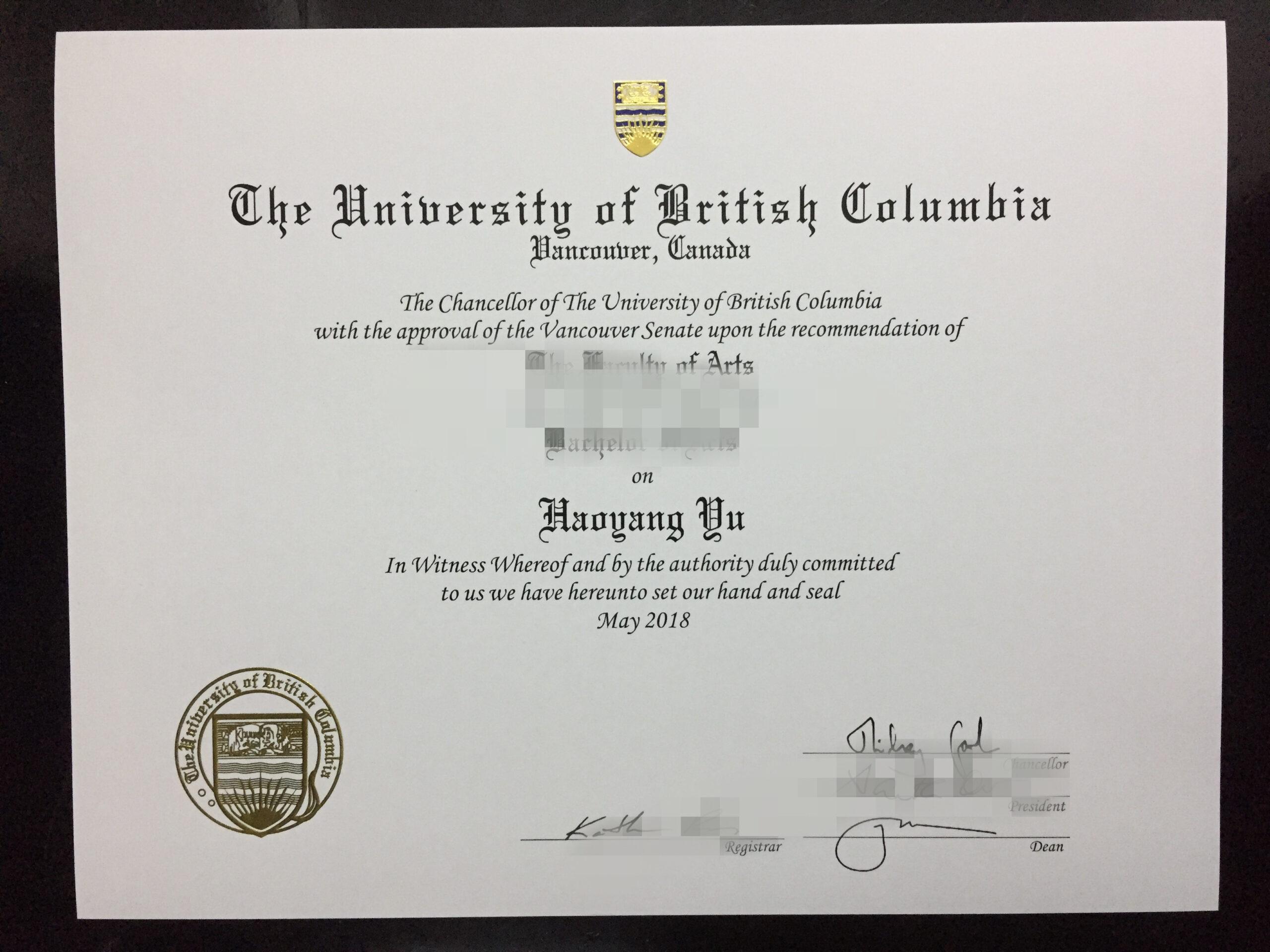 英属哥伦比亚大学毕业证照片|UBC毕业证照片|加拿大英属哥伦比亚大学毕业证成绩单照片