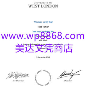 西伦敦大学毕业证案例图|UWL文凭样本|英国西伦敦大学毕业证成绩单照片