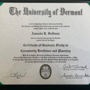 佛蒙特大学毕业证案例图|Vermont文凭样本|美国佛蒙特大学毕业证成绩单照片