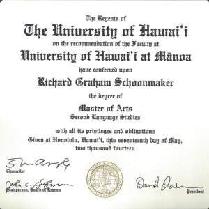 夏威夷大学马诺阿分校毕业证案例图|manoa文凭样本|美国夏威夷大学马诺阿分校毕业证成绩单照片