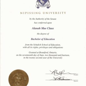 尼皮辛大学毕业证案例图|Nipissing文凭样本|加拿大尼皮辛大学毕业证成绩单照片